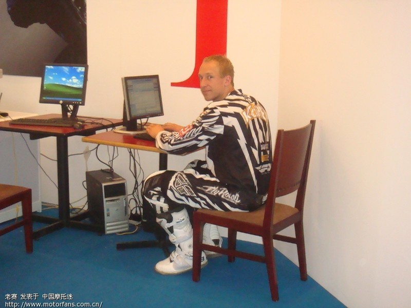 在摩托车展上老外车手压我 |