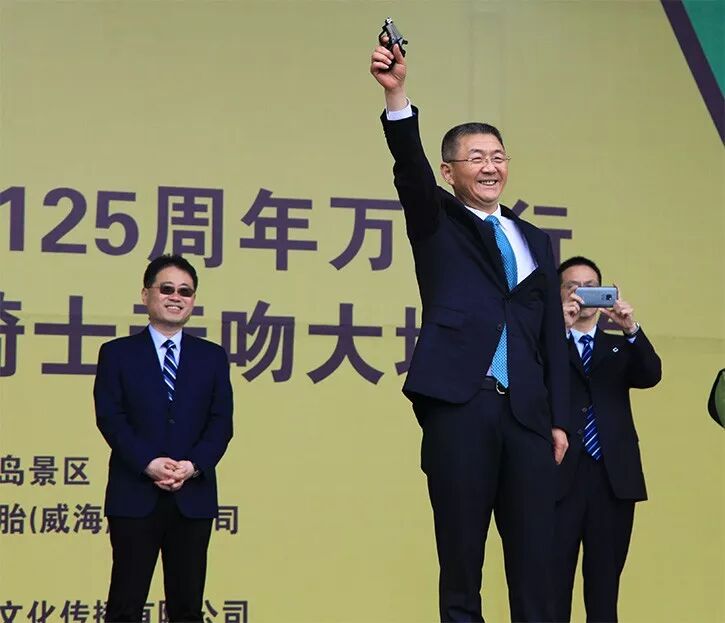 仪式的最后由腾森橡胶轮胎(威海)有限公司总经理马光明鸣枪发令,开始整个活动的第一阶段骑行,甲午战争的古战场刘公岛为起点,以摩托渡海环刘公岛骑行的形式致敬先辈,这也是刘公岛史上首次摩托渡海环岛骑行。