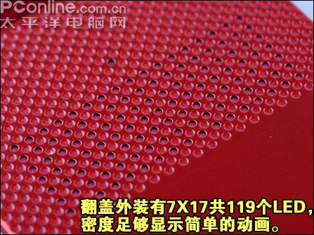 NEC N705iμ N705iμ装备的是3英寸WQVGA(240×427像素)26万色LCD,WQVGA分辨率是NTT DoCoMo在07年末推出的705i系列的统一规格,相比其905i系列的WVGA分辨率,WQVGA明显不够精细。但相比起国内盛行的QVGA,WQVGA显示效果也比较理想了。 NEC N705iμ 翻盖上的集成度相当高,在3mm的厚度上,除了装上3英寸LCD,还装有扬声器以及“My Signal”LED阵列。 NEC N705iμ N705iμ比起前代的N704iμ所采用7×7阵列LED有了长足的进步,采用了7×17的LED阵列,可以显示更多内容,一般简单的动画和图案都能在上面显示。 NEC N705iμ的LED模块 NEC N705iμ NEC N705iμ 相对于N705iμ强悍的超薄造型,摄像头方面就显得稍微落后一点。N705iμ只配备200万像素手动调节摄像头,拍摄效果相比起拥有自动对焦功能的机型来说是比较一般的。但这样的配置,相信是出于迁就超薄机身的关系。