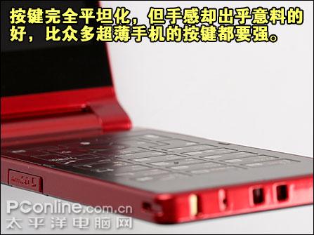 世界一流造工 打造世界第一薄 NEC N705iμ 虽说N705iμ的机身是如此之薄,但是造工出色令整体质感有相当好的表现。由于屏幕没有旋转等附加功能,只是一个方向的翻盖在打开和合上时都相当顺畅,而且完全没有松松夸夸的感觉。 NEC N705iμ 值得一赞的是N705iμ的键盘。尽管是超薄机身设计,键盘设计成几乎是平面,但是如此平坦的键盘竟然还拥有适当的键程以及机械键感。按动时手感清晰,比起三星U108和U308的按键都要强很多。 NEC N705iμ NEC N705iμ支持Micro SD卡扩展,最高支持2GB容量。从卡槽内部看,与外界只是隔着一片金属片以及一片塑料,但整体强度却有较好的表现,用力按压也没有出现很大的变形。 NEC N705iμ NEC N705iμ N705iμ装备一块几乎与机身(除翻盖外)同厚度的电池,可拆式电池并没有向超薄机身妥协。电池表现不用想也知道是比较一般的了,续航能力较一般。 NEC N705iμ 跨界比拼 与iPod touch斗薄
