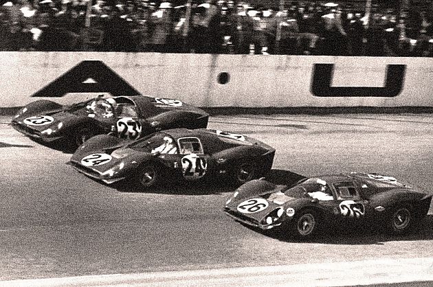 1967年法拉利主宰了福特的主场——美国24小时Daytona大赛,搭载4升引擎的法拉利330 P4比福特GT更快更可靠,面对没有完赛的福特车队,法拉利三台赛车“Side by Side by Side”传奇冲线,前两台是P4s赛车,第三名是一台P3赛车,法拉利包揽冠亚季军的时刻,给全球的车迷留下了极其深刻的印象。这也算是对1966年勒芒赛上福特没能完成“Side by Side”冲线的一种嘲弄吧,至少也展示了法拉利协调的内部关系。