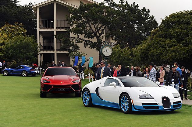 今年,列席概念车小组讨论会的品牌有布加迪、兰博基尼、阿斯顿·马丁、迈凯轮、宾利、SRT、Hennessey、英菲尼迪、雷克萨斯等。布加迪威航16.4 Grand Sport Vitesse、兰博基尼Urus以及超级强大的Hennessey Venom GT比肩而立,谁也不服谁;宝马Zagato Roadster以及阿斯顿·马丁Vanquish虽然外表颇具君子气质,但散发出来的强大气场依然威慑全场;2013宾利欧陆GT Speed和迈凯轮MP4-12C Spider都属于非常适合在绿色草坪上亮相的车型,同样吸引了不少人的眼球