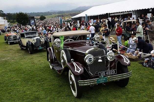 而周四就到了“Pebble Beach Tour d’Elegance”的时间,这是一场路程17英里(27公里)的汽车巡游,你可以在沿途挑一个绝佳的地点,然后看着成队的上百万美金名车从眼前驶过,从1947年开始的法拉利、美国经典的豪华车Duesenburg、布加迪老爷车等等。