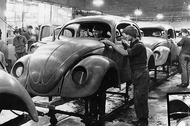 1937年3月28日,"Gesellschaft zur Vorbereitung des Deutschen Volkswagens mbH"公司宣告成立,随后于1938年9月16日更名为"Volkswagenwerk GmbH"。1938年早些时候,在今天的沃尔夫斯堡,大众汽车公司开始建厂,用以生产由费迪南德·波尔舍设计的新款车型。而概念车型也日渐成熟,并确定了最终造型。1939年,改进后的甲壳虫原型车被希特勒命名为“KdF-Wagen”。但是,第二次世界大战使投产计划化为泡影,大众汽车的生产能力被用于军备生产。当时约有20,000名强制劳工和战俘,随后又有集中营犯人在这里被迫劳动。