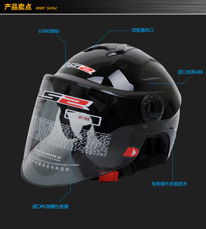 正品LS2头盔 摩托车头盔夏盔 电动车头盔男女OF108 防紫外线半盔