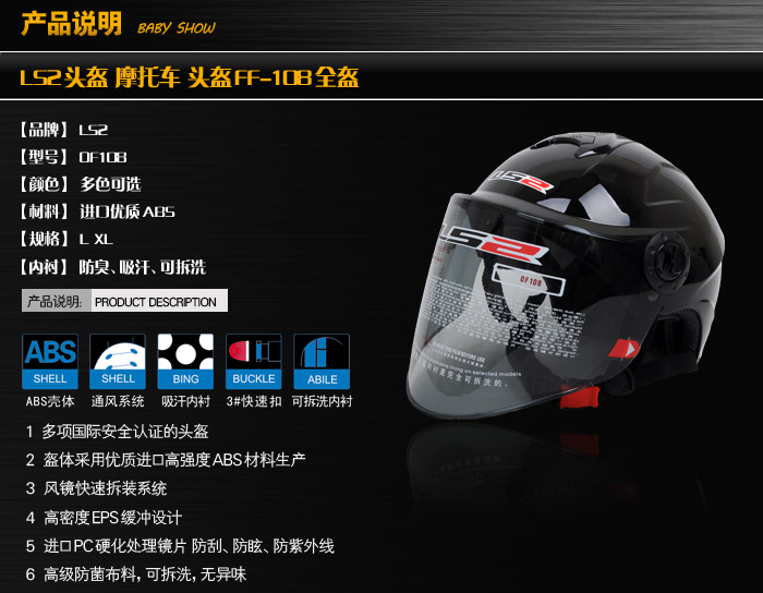 | | | | | | | L号(合适55-58)XL号(合适59-61CM)请亲留言大小.底下有测量头围的图片 | | 进口优质ABS壳体+高密度EPS泡沫缓冲层+可拆洗内衬+PC树脂镜片 | | | | | | 1.LS2头盔是取得国际认证最多的公司! 2.盔体采用顶级复合材料.坚固抗摔性能比一般头盔强好几倍! 3.防雨效果佳.新式天窗式通风开关.凉快清爽.开关自如.! 4.缓冲层采用积水牌高密度泡沫.安全性能极高! 5.干燥舒适的内部结构,经过卫生处理抗菌防臭吸汗! 6.镜片防刮.防辐射.防紫外线.防眩光.减速.清晰耐磨等功能 7.盔型超酷独特大方.引领时尚潮流派.做工精致.品质高端 8.内衬是完全可以拆洗. 9.新式镜片基座.坚固耐用 10.盔体边缘加固设计.安全性能极高.达国际抗冲标准 11.限量配送原厂环保头盔布袋.反光贴.LS2-LOGO.