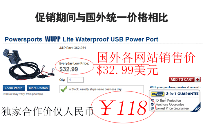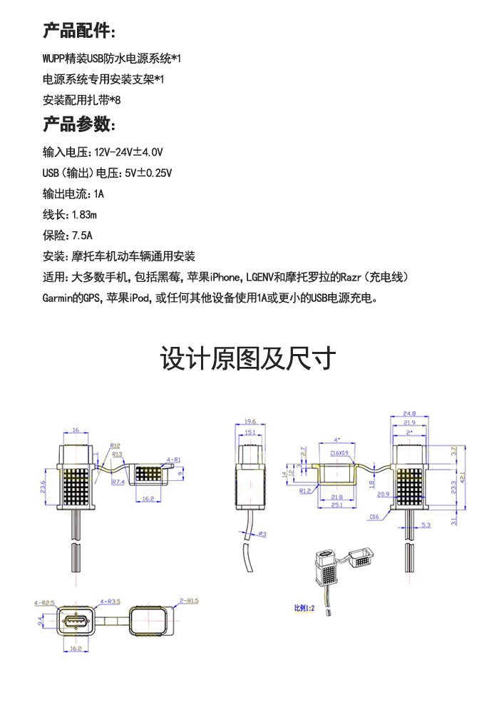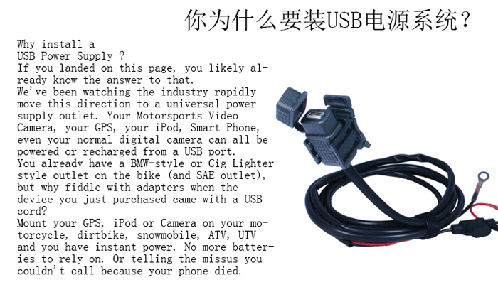 雨田专柜WUPP摩托车防水USB手机\导航车充供电系统无需防水点烟器 |