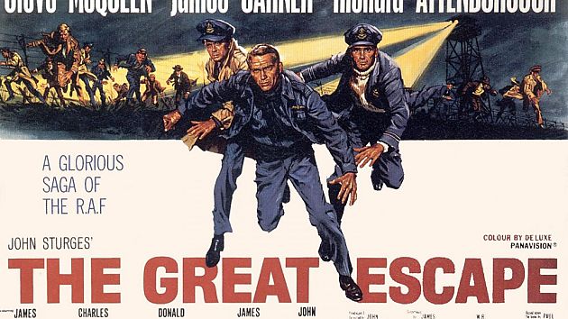 1963年的The Great Escape(《第三集中营》又名《大逃亡》)。相信很多七十年代出生的中国人都看过一部描写二战期间盟军战俘,利用与德国人足球比赛的机会从战俘营逃脱的影片《胜利大逃亡》(英文名Victory),史泰龙还在里面扮演了个配角。习惯了看大团圆结局的观众可能对麦昆的《《第三集中营》会非常失望——同样的二战战俘逃亡故事,《第三集中营》里面的战俘筹备的更为周全,更为严密,时间更长,波折更多,而且他们也“胜利”的逃了出来,但是逃脱的战俘最后大部分被抓住,进而被纳粹杀害。麦昆在影片中扮演战俘营里唯一的美国军人,逃亡途中抢了辆摩托车,企图甩脱纳粹的追捕,跨越瑞士国界。冲击了许多次,这条硬汉还是失败了,但是他最后这场摩托追车也成为经典。这部影片虽然没有把这个普通人追求自由的故事过分理想化和浪漫化,但是沉稳的节奏里始终忠于现实,反而更突出了这些平凡英雄的悲剧,让人感叹人的毅力和对自由的渴望,才是身处逆境里最有力的武器。