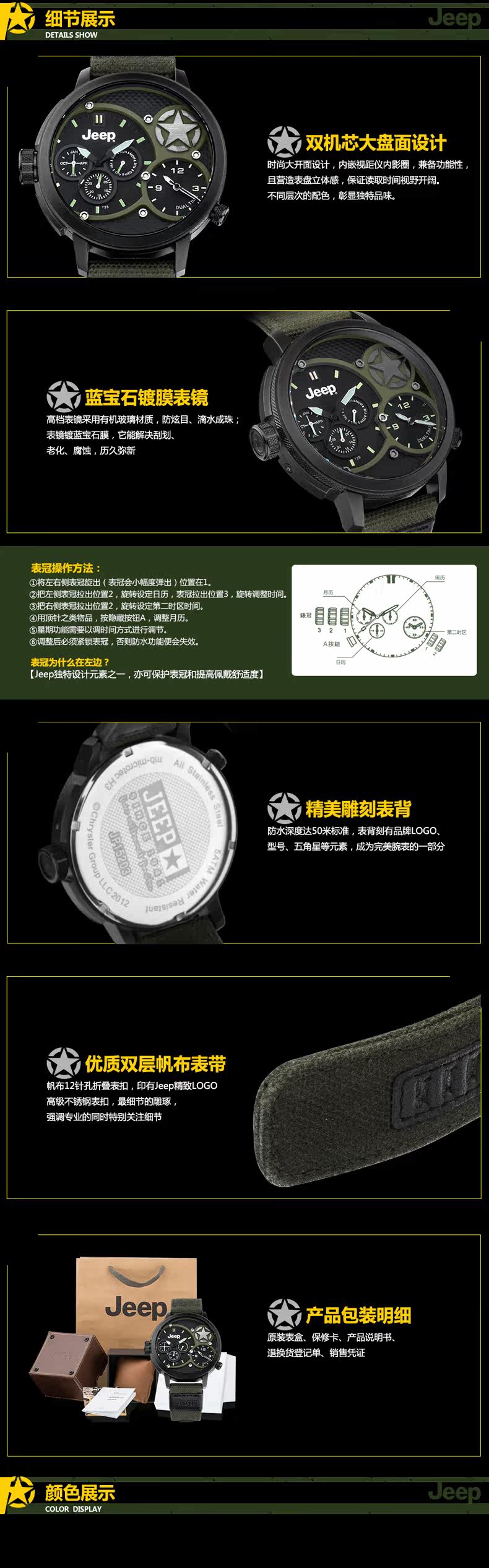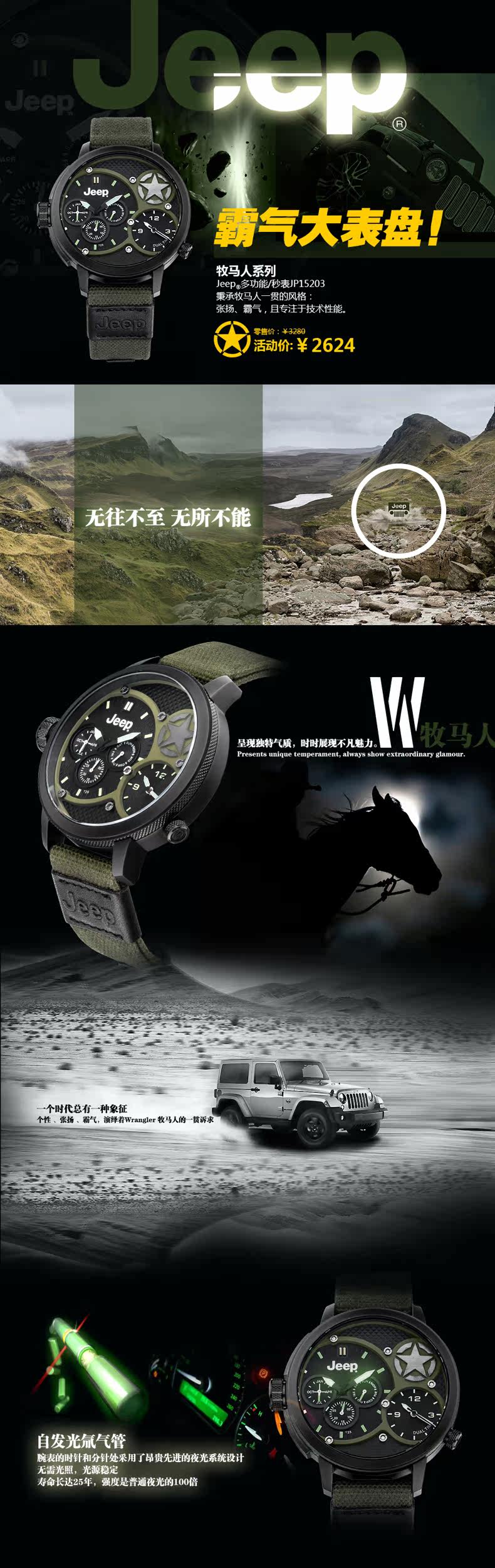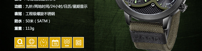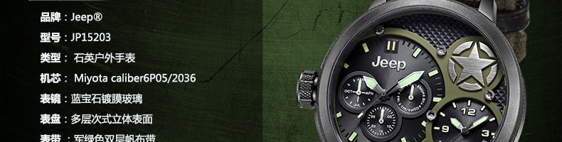 Jeep/吉普 牧马人系列JP15203 大盘石英男表 多功能 运动手表 |