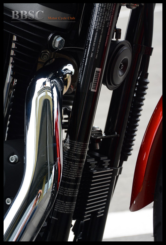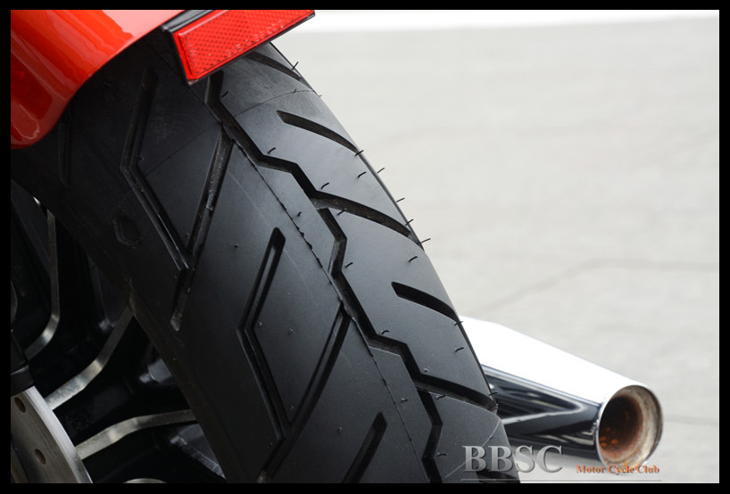 而轮胎方面则有米其林为其特别定制,不仅胎壁上打有Harley-Davidson字样,连胎面上的磨损标识也是采用哈雷的LOGO形状,相当特别。