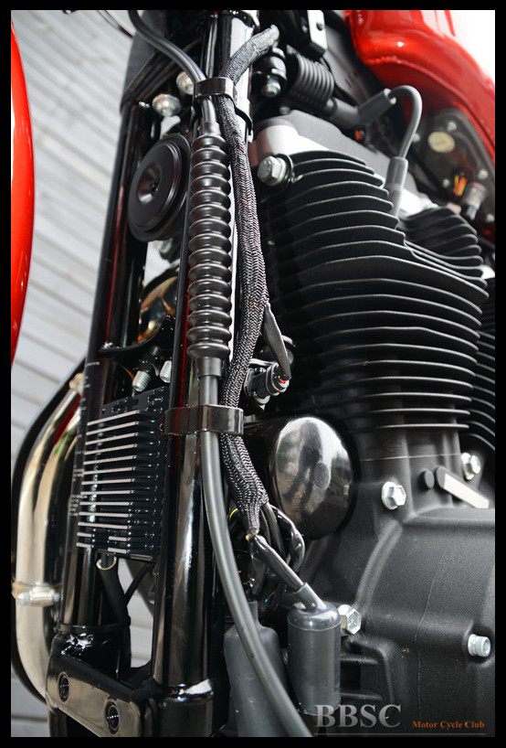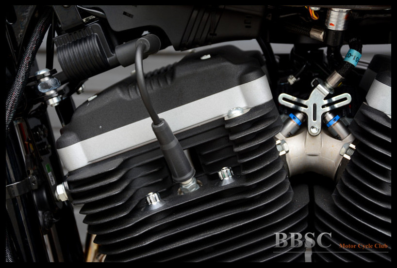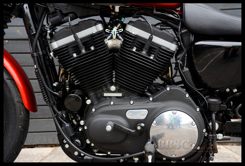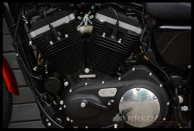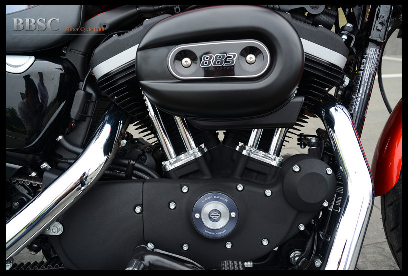 Evolution系列的883cc发动机采用45度夹角V型双缸风冷布局,推杆式顶置气门。长冲程设计使得这幅发动机在3750转时能够提供66牛米的最大扭矩。放置于车身后侧的单边进风气箱是Sportster车系的一大特征