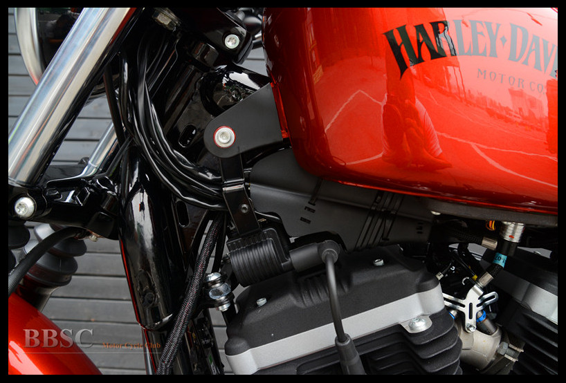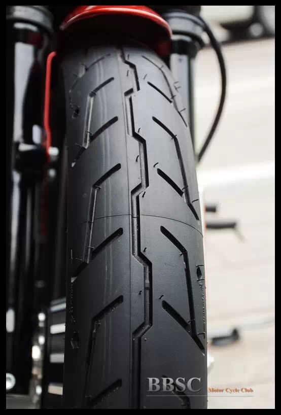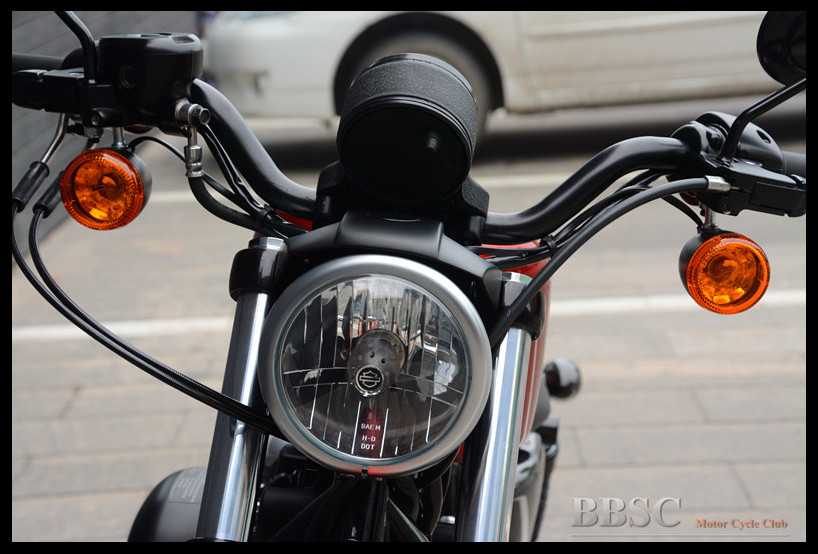 883硬汉采用的是前19寸、后16寸的黑色13幅铸铝轮圈,款式方面对于哈雷摩托车来说算是比较新潮的。