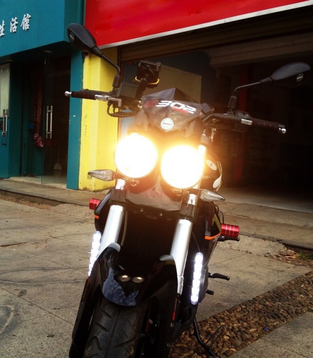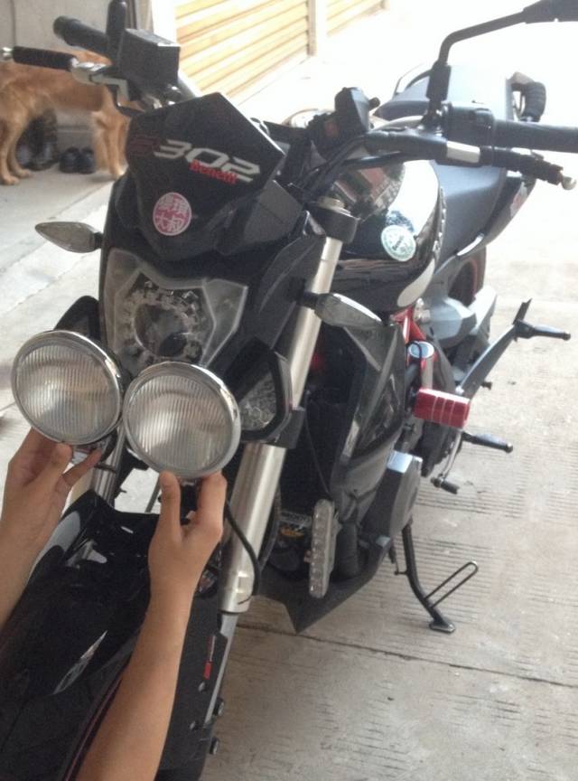 车友afzwei:“自从买了贝纳利蓝宝龙300我就没有停止折腾的脚步,今天给大家带来一项重量级改装:凯旋版双灯车头改装。 多数摩友对300车头的原厂造型表示尊重,但中大排量车头改装在车迷中巧然兴起,刚好本人也是其中之一,从提了车开始就一直在构思如何改一下蓝宝龙300的车头,也看了不少黄龙车友的改装实例,结合本人折腾起来经常不按常理出牌的习惯,决定改个比较另类的。 英国凯旋街霸SpeedTriple与美国哈雷旗下已经停产的贝尔街车都是双灯街车的代表,非常个性。” 贝尔街车 凯旋街霸SpeedTriple 自从看到这对炯炯有神的大眼就被他经迷住了。于是马上测量车头大小,网购复古圆灯一对。