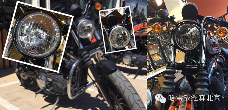 为了让头灯与机车前叉色调一致,保持美感,灯圈由普通的银白色改为亮黑色,经过改换之后,头灯在黑色灯圈的反衬下显得更加净白,透出一种直向前驱的霸气。