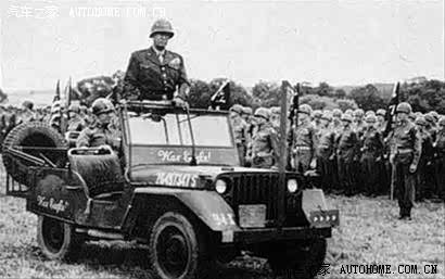 二战名将巴顿将军登上Jeep Willys检阅前方部队