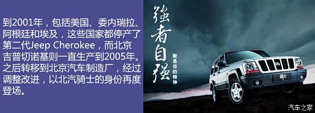 北京吉普切诺基是最早被国人所熟悉的车型之一,在上世纪80年代中期,它以“中外合资首款SUV”的身份进入了人们的视野,并且一生产就长达20年之久。后来随着合资公司重组,北京吉普切诺基不再生产,但车迷们并没有忘记它,反而随着时间的增长,大家对切诺基的感情越来越深,还给了它一个亲切的称呼——小切。