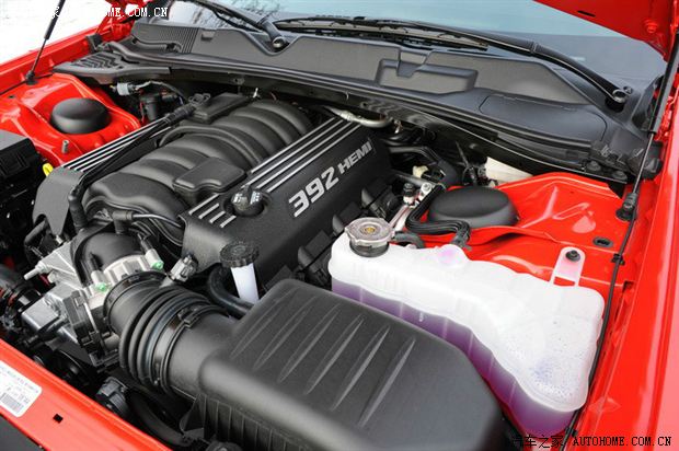 打开发动机舱,硕大的“392 HEMI”标识首先映入眼帘,它代指发动机的排气量为392立方英寸,换算成公制为6.4L)。从视觉的“狠劲”上评价如果能将“392 HEMI”标识涂装成红色一定会更加战斗。作为克莱斯勒运动部门专为挑战者调校的6.4L,采用V型布局的八缸自然吸气发动机,它拥有470马力的最大功率和636牛·米的峰值扭矩,单纯从数据上看相比野马GT500分别低了88马力和55牛·米。粗壮的大直径进气管,充分诠释了作为一款大排量自然吸气发动机对于“空气的渴望”。