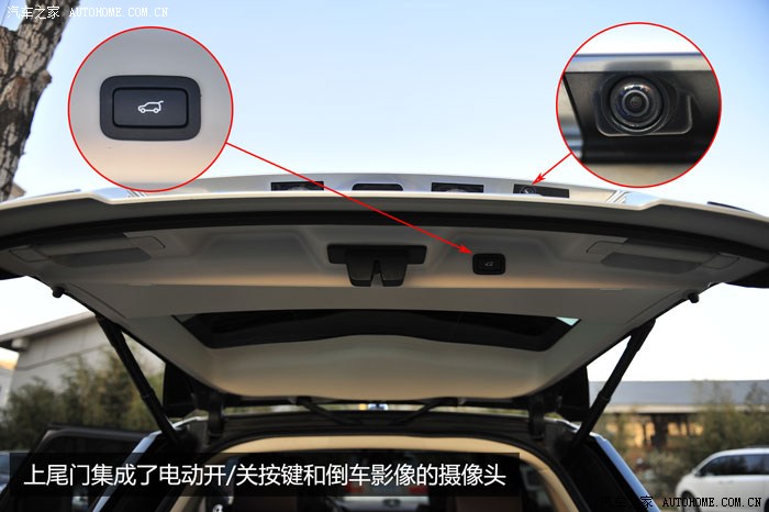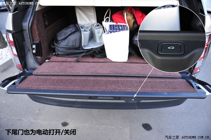 尾门设计分为上下两部分,全部为电动开启/关闭,上尾门可以通过车内的尾门开启按键、智能钥匙或尾门本身的按键开启,下尾门开启后可以形成天然的椅子供乘客欣赏大自然美景。