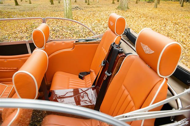 和很多豪华品牌一样,摩根为车主提供了丰富的选装清单,从车身颜色、皮革材质和木料类别都可以自行选装。在配置上,车厂更是细致得可怕,比如竖条中网后的格栅就价值3348元,而银色前后保险杠则要价高达26304元,和内饰同色的前风挡遮阳板也需要花费3660元;由于节约了4843元,试驾车的车门甚至没有限位器。