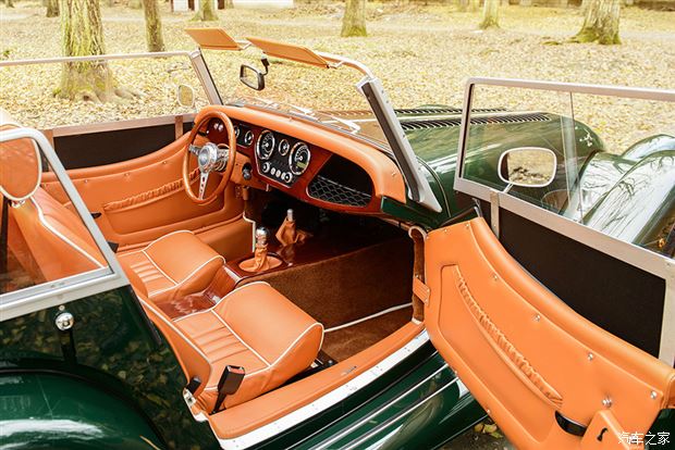 要说摩根和阿斯顿-马丁这种英国跑车的区别,就像Henry Bailey和Burberry在时装界的区别。举个例子,别的汽车品牌每过六七年就对旗下产品升级换代,但摩根还在制造诞生于1950年的Puls4。而且,我必须说明,Puls4是摩根4/4的升级版,是的,4/4就是摩根历史上第一款四轮汽车,最早投产是在1936年。 一部保留上世纪30年代设计的英国汽车,正大光明地行走在中国街头,光脑补一下就感到这绝对是道风景。不需我用文字描述摩根Plus4,大家就能通过图片读到这种复古的魅力,不过我还是想讲点在图上不那么容易看到的细节。