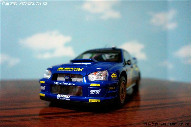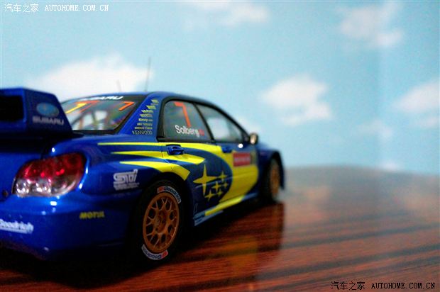 仿生学虎鲨设计的雏形,Impreza WRC 8代车型-2003 索伯格7号继承了Subaru在WRC辉煌衣钵,这辆八代也是SS的产品,其是咱从一个广东玩家手中收的元年产品,其最大的产品亮点就是前进气格栅用的金属蚀刻片还原真车质感,同时使用所谓的“珍珠漆面”体现拉力蓝的魅力感,原本三5的车身拉花被斯巴鲁星星取代,也印证了汽车竞技更趋向于健康,将烟、酒等不健康的产品元素彻底从体育竞技层面上抹去,从而树立还原体育本质。同时斯巴鲁8代车型在WRC上也正是与三菱EVO开始了“既生瑜何生亮”的恩怨情仇。