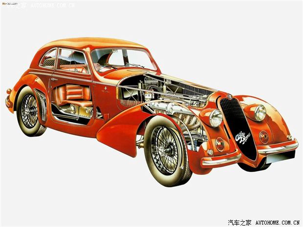 而我今天要讲的Alfa 8C却来自上世纪的三十年代,它的全名叫做Alfa Romeo 8C 2900B Lungo with Carrozzeria Touring Superleggera Body,这一长串的名字刚开始会让人有些摸不到头脑,为什么最后还要写Carrozzeria Touring Superleggera Body这一段字呢,了解老爷车的朋友可能知道,在汽车发明到上世纪七八十年代间,因为那时候的车辆都采用了非承载式结构,所以很多车厂都是会独立出售自己品牌的不带车身的车辆,而车身则由消费者自己去选择车身制造厂进行个性化打造,而这种车身制造厂被称为Coach Building Company,当时百花齐放的车身制造业为我们带来了很多历久弥新的绝美设计。