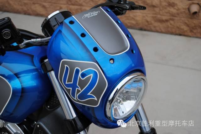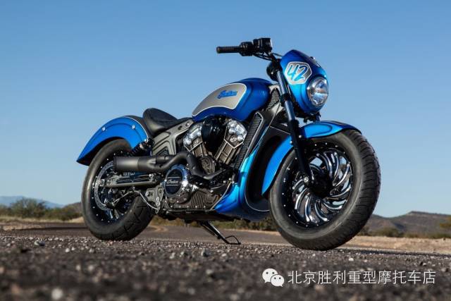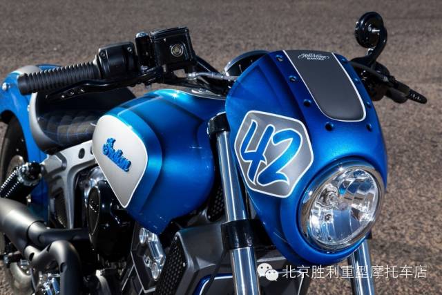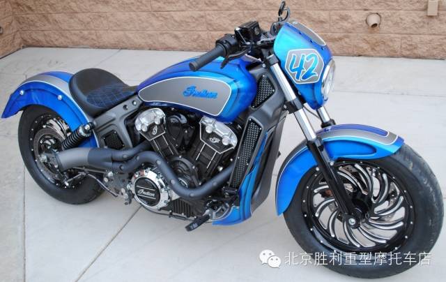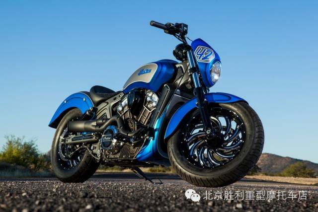 这辆名为“Scout 42”的印第安整体改装风格简单轻快,海蓝色渐变糖果漆面极为清爽,造型简洁,在寒冷初雪的2015带来一股海洋暖流,下面来感受下。