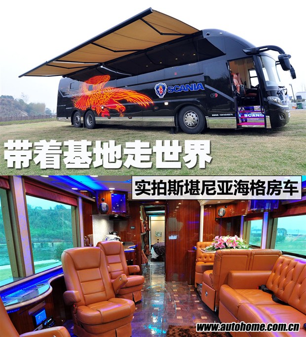 带着基地走世界 实拍斯堪尼亚海格房车 很多人喜欢旅行,而又有人更钟爱在旅途中,带着家人随时走进自家的温馨小屋,享受且行且停的生活。今天,文章中的这个“大家伙”——斯堪尼亚海格房车,或许能把温馨小屋升级到“小别墅”。不过,我觉得称其为“基地”更贴切,这是因为它的滑移舱可改变车体结构,扩展后车内空间可达45㎡;且液压支撑腿会让人感到有一种“驻扎的感觉”。这款房车国内仅有不到30辆,属罕见之物。接下来,我们去感受一下它的驾驶区、会客区、餐厅区、生活区和主卧区等5大部分的详情。