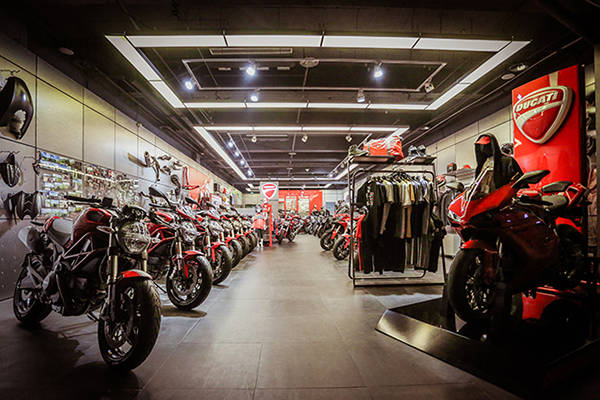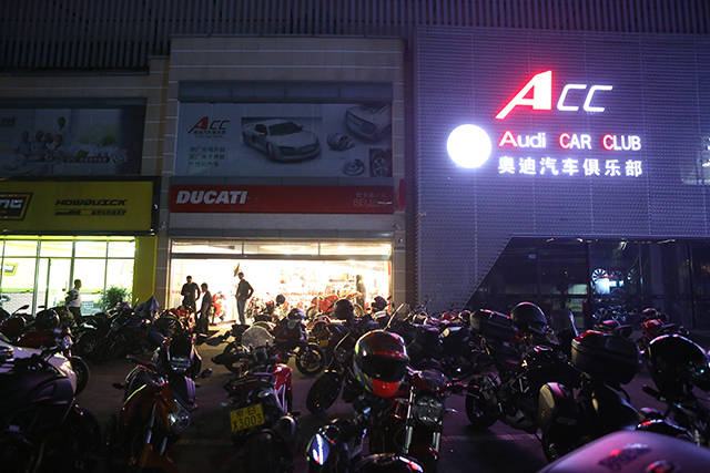 晚上19点,夜色中的杜卡迪北京展厅