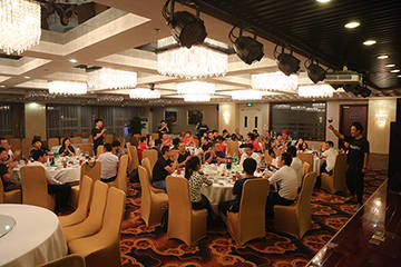 准备参加京城夜巡的兴奋的车主、车友们,已经集合到酷车小镇宴会厅