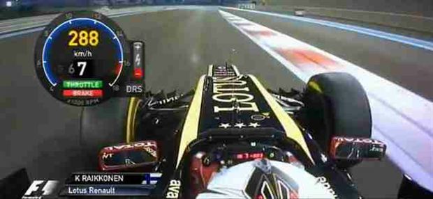 这张封面是KIMI在2012年迪拜的阿布扎比正赛中的录像,这只是他其中一次刹车,从直播画面的遥感数据显示可以看到,KIMI在这一瞬间开始刹车,我们把刹车开始的这一处,称为刹车点。刹车点并不是一个固定不变的点,每个车手都会有自己的选择。不过在车况相同,赛道状况相同的前提下,不同车手之间刹车点的选择应该不会相差太大,只会在一个比较小的范围内有所区别。