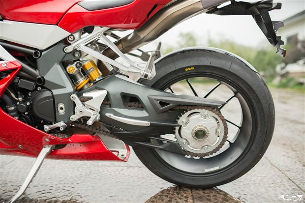 鳄鱼179cm的身高穿上骑行靴之后可以轻松双脚掌着地,座椅宽大而舒适,屁股可以找到一个舒适的支点,骑行姿势够战斗但并没太过于战斗。前43mm ?hlins NIX钛合金涂层的前叉属于量产车型中的顶级配置, TTX36的后减震在专业赛车中也算的上高端的配置了。顶级的前后悬挂配合上轻量化设计的轮毂,让入弯变得非常轻松。诚恳的说,F4RR没有更轻,更窄小的杜卡迪1199和宝马S1000RR那样灵活,但顺滑的动力输出和整车调教让它在弯中的稳定性变得非常优秀的。