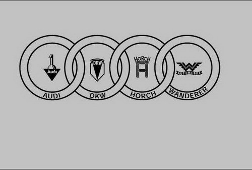 奥迪四环标志的诞生1932年奥迪、霍希、漫游者和小奇迹四个公司联合成立汽车联盟