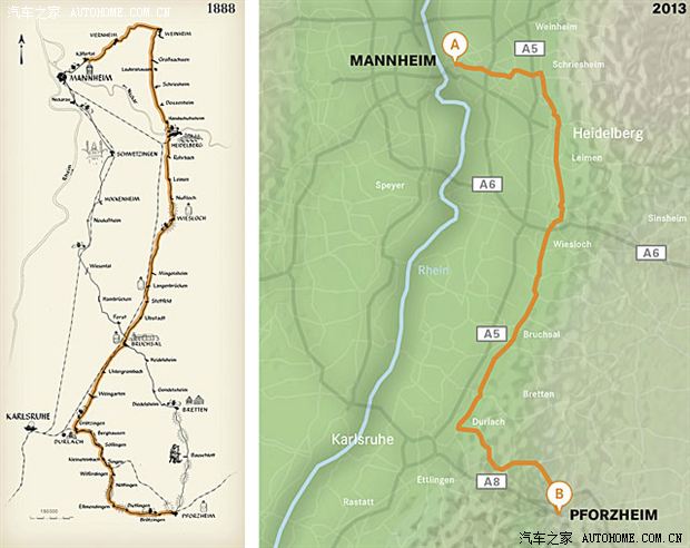 S 500 Intelligent Drive自动行驶的路段相当别具意义,奔驰选择让其走上了126年前,创办人Carl Benz之妻Bertha Benz曾驾驶过的路段,从德国Mannheim到Pforzheim,约100公里左右的路程。约125年前,为了证明Carl Benz首辆作品patent motor car No.1 的能耐,Bertha Benz于1888年驾驶着这辆全球第1辆的三轮汽车,进行首次长距离的路试 (并从Pforzheim成功返回Mannheim) 。