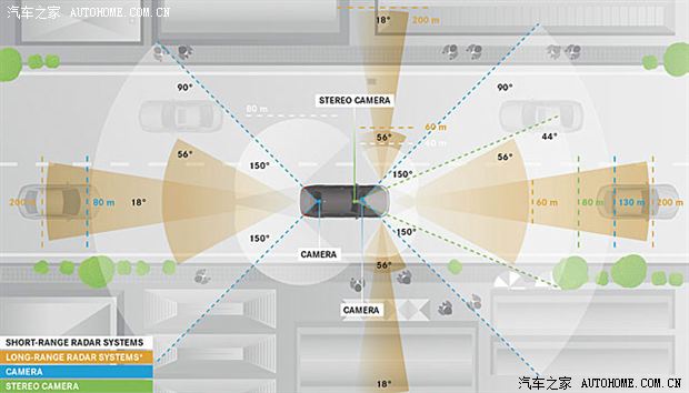 以新一代S级为基础打造的S 500 Intelligent Drive,其实在基础架构上与一般S级大同小异,同样搭载了S级和E级所使用的Intelligent Drive主动式安全套件。不过相较一般车款,奔驰为其配置了更多感应器,以对交通状况进行更精密的侦测。