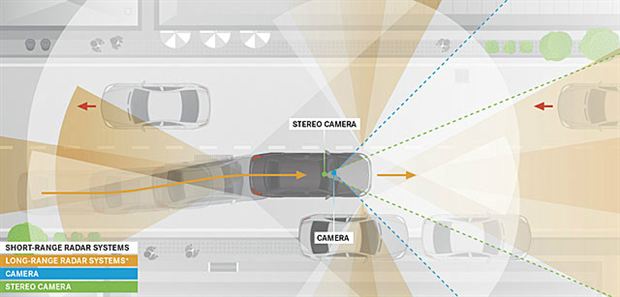 S 500 Intelligent Drive除了雷达外,车上也增加了更多的摄像镜头,并且在前保险杠左右边缘配置了长距离的雷达组,以提前侦测左右来车;而车尾后方也增列了一具长距离雷达以侦测车尾的交通。4具短距离雷达被配置在车辆的4个角落,让其侦测周遭的环境和用路人。至于交通号志则是由挡风玻璃上的彩色摄像镜头分析,另一具镜头则在车尾,对经过的环境进行拍摄,而这些环境特点也以在上路前就被输入在数位地图上,以利于进行交叉比对;比起单靠GPS卫星系统,此举将显著地提升车辆定位的准确性。