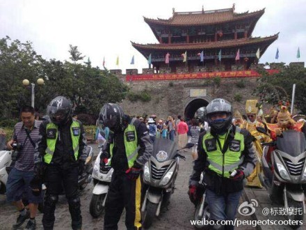 标致“放羊班”车队漫步大理古城,下面这张的古城前合影最右边亮点发现了没有?悟空也爱上了Citystar200i,莫非也想跟着车队骑着狮子,再一次新的西行体验?!