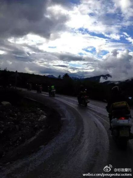 寻 秘西藏第七天,七夕,车队从丽江出发,沿金沙江畔冲上四千六百米的白马雪山,雪山美景震撼,让队员流连,高原上Citysrar200i性能发挥稳定出 色!人车开始越来越默契,队员骑行技巧稳步提高,时速一百迈能整队平稳过弯!看来最快的提升骑行技术与经验还是长途骑行啊