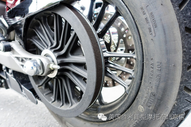 Indian Scout采用皮带传动设计,可大幅缩小传动噪音,两次调整之间的里程也比传统链条还长。