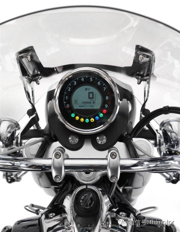 虽 然California历史悠久,但先进的电子科技技术不会被落下,定速巡航系统是Moto Guzzi首次引入的高科技设备,取消定速设定也很方便,你只需要轻轻的拧动油门或者捏离合把手便会取消。新车还配备了三重动力模式(Riding mode)和牵引力控制系(TractionControl)。动力模式分别是“巡航” (Touring)、“快速”(Fast) 以及“湿地”(Rain),不同的动力模式有着不同的发动机输出特性和牵引力控制的敏感程度。牵引力控制系统也可以独立设定。巡航模式的发动机牵引力较 少,油门反应较平滑,扭矩输出较线性,而快速模式在放油收油时会比另外两种模式更加粗犷,更热血。而且电子油门、牵引力控制系统等也都静候指令。