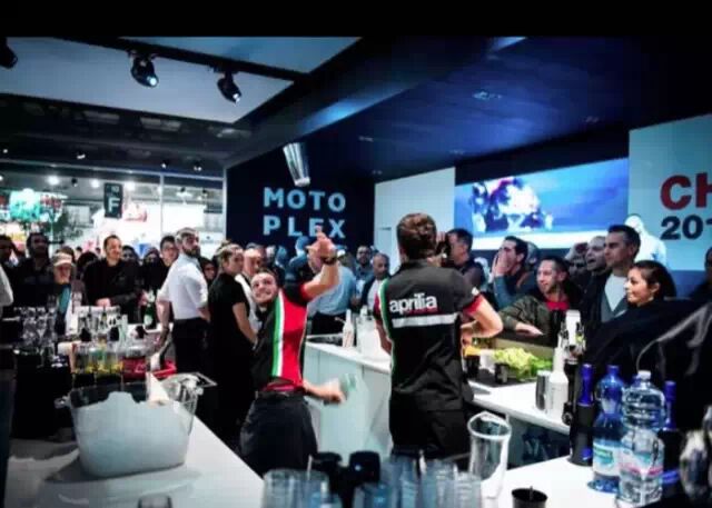 EICMA是世界上顶级的摩托车展会,本次展会比亚乔同期举办了首家概念店Motoplex现场展示体验。 展会期间比亚乔集团展馆举办了2个活动: 11月7日,Motoplex周五狂欢party,由Kris Reichert 和Mirko De Crescenzo担任DJ一起激情狂欢; 11月8日,比亚乔Motoplex演变成一个电视演播室,超大屏幕播放了由Federico Russo担任主持的现场show,为Aprilia即将参赛的2015 MotoGP选拔撑伞模特。