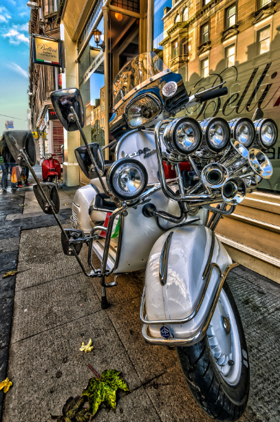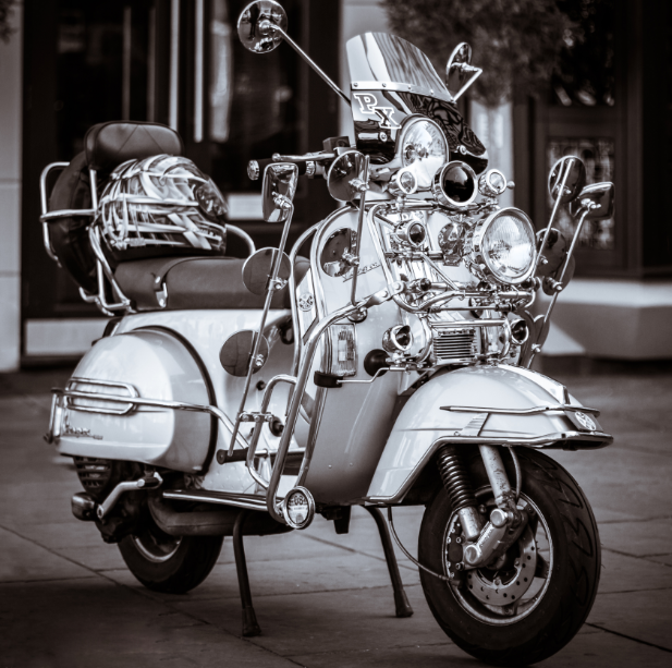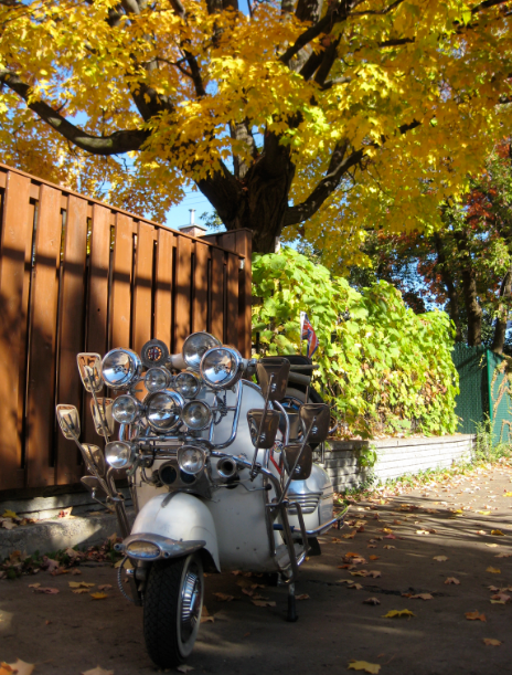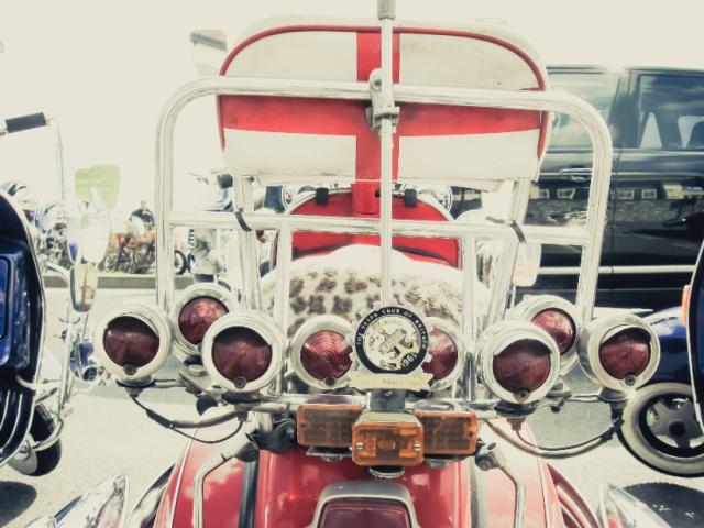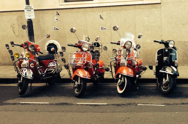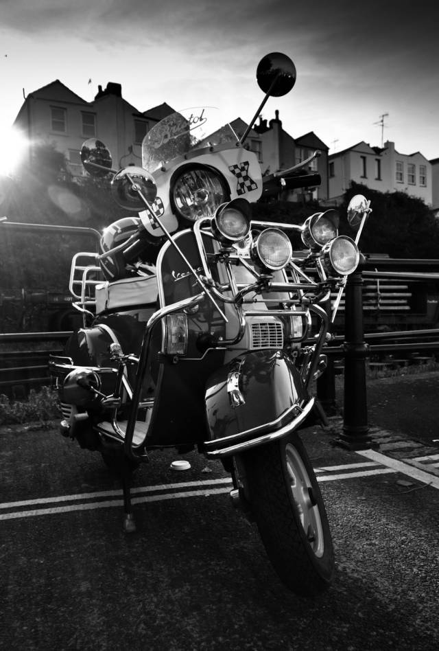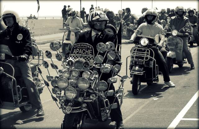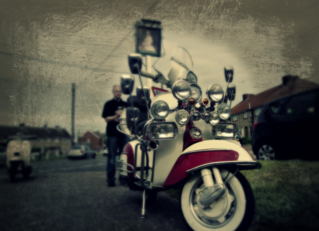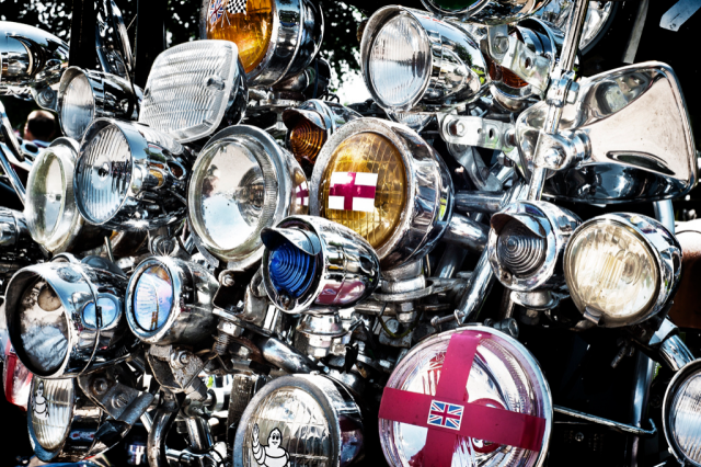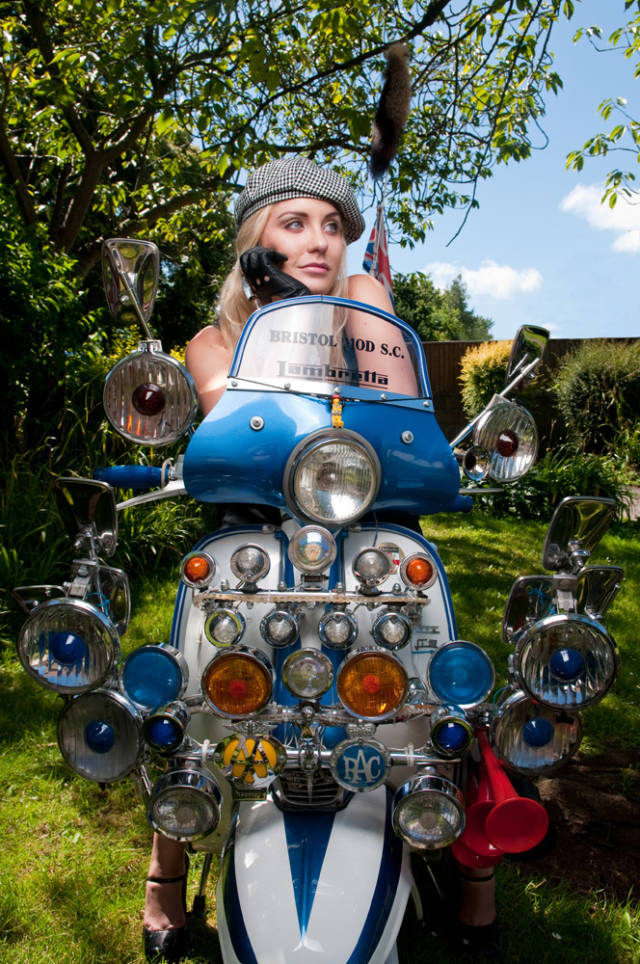 尔 后,越来越多的低收入年轻人开始被MODS所吸引而加入这个行列,他们把对高级汽车的向往转移到VESPA上,诸多英国高级汽车的装饰件被拿来当装饰品, 如JAGUAR、ROLLS-ROYCE等汽车部件均被MOD一族作为最佳装饰品。而车灯成为其中最为流行的改装件,当时一部资深MOD族的VESPA可 能会出现十几甚至几十颗车灯!