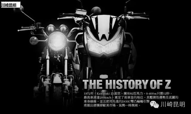 1972年KAWASAKI凭着先进技术及追求领导地位的精神,推出了一款首次使用DOHC双凸轮轴4气缸的量产跑车,当年打破量产车最快车速记录,其4出4排气强化了Z1的轻巧车身同时车辆性感的造型.在欧美市场取得空前成功。 上世纪50-60年代Cafe racer风潮.启发了后期车辆设计风格.其中继承了Z1精神的Z1-R.绝对是Cafe racer的代表作 虽然Z系列的直列四缸引擎使用风冷散热.深得车迷爱戴.车厂不断提升车辆性能.而Z1300的面世.也标致着Z系列出现 质 的进步.让人望而生畏的1268CC水冷直列6气缸猛兽。 1981年Z1100GP是使用了电子燃油喷射系统.成功的打造了第二代Z系列机车 1981年来自Z1的改装车-KZ1000J.参加美国AMA,Superbike并获得冠军.为了纪念历史时刻.KAWASAKI在82年推出了Z1000R限量版 经过多个年头.Z系列暂时退下火线.取而代之的是西风系列及其后推出的ZRX1100.1200S/R等等.知道2003年.KAWASAKI决定把正宗的Z1卷土重来.但新车不在眼与无止境的马力输出及赛道性能.因为工厂认为大众化的驾驶乐趣更重要 自新一代Z1在2003年推出.凭着高质量和高性能.在全球市场大放异彩.在2007年推出升级版Z10003新车采用全新设计的钻石型钢管车架.有效的抑制发动机的震动.配以更高级的铝合金副车架.而增加了25MM的轴距.目的提升车辆的行车稳定性 KAWASAKI一改上两代的理念.第3代Z1000在骑行了乐趣上进行了开发.全新的铝合金车架不但提供了更强的刚性.同时有利于车辆的轻量化.加强了车辆操控性.整车舒适性成功的使新一代Z1000极佳的操控 2014 年Z1000新车的驾驶姿势比以前更低,更接近跑车,外型变得越发犀利,也更富有杀气感。车头灯是重点改进的地方,新款Z1000将之前Z系列的W形头灯 进一步压弯,与油箱线条构造浑然一体,在视觉上充满侵略性,呈现出一种势如破竹的待发之势。装配昆虫复眼造型的LED车灯,四颗LED前灯以中间两颗为近 光灯,外侧两颗为远光灯,全部点亮便可称其为四眼魔神了,尾灯与前部一样采用LED设计。新车线条比Honda CB1000更丰富,外型比Yamaha MT-09更凶恶。这样的设计风格对于年轻人再好不过了,靓丽的外观和狂暴的动力是他们最为追求的要素。 14款Z1000-掠食者已经让人意犹末尽.接踵而来的15款.更是让人心血沸腾.她就一个让人上瘾的毒品. |
