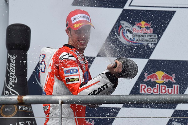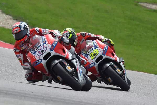 自上一站卡塔尔站以来,杜卡迪车手 Dovizioso 在第二站美国奥斯丁再度发力,凭借 Desmosedici GP 15 再获亚军。杜卡迪车队发挥有力,在首四圈中拔得头筹,非凡的表现为他们这场比赛做了很好的铺垫。