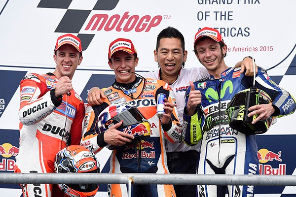 “今天又是一个非常成功的比赛,Dovizioso 此站的亚军比上一站卡塔尔站来的更令人激动。Dovi 真的是非常有能力的一个赛车手,他能很好地控制前胎,动作十分敏捷,当然最终也取得了很好的成绩。对于 Iannone 来说,他的速度也是很快的。我也相信如果他在前几圈可以稍微放松一些,也能够成功获得杆位的。现在我们即将去阿根廷站,也是时候证明我们的实力了!”