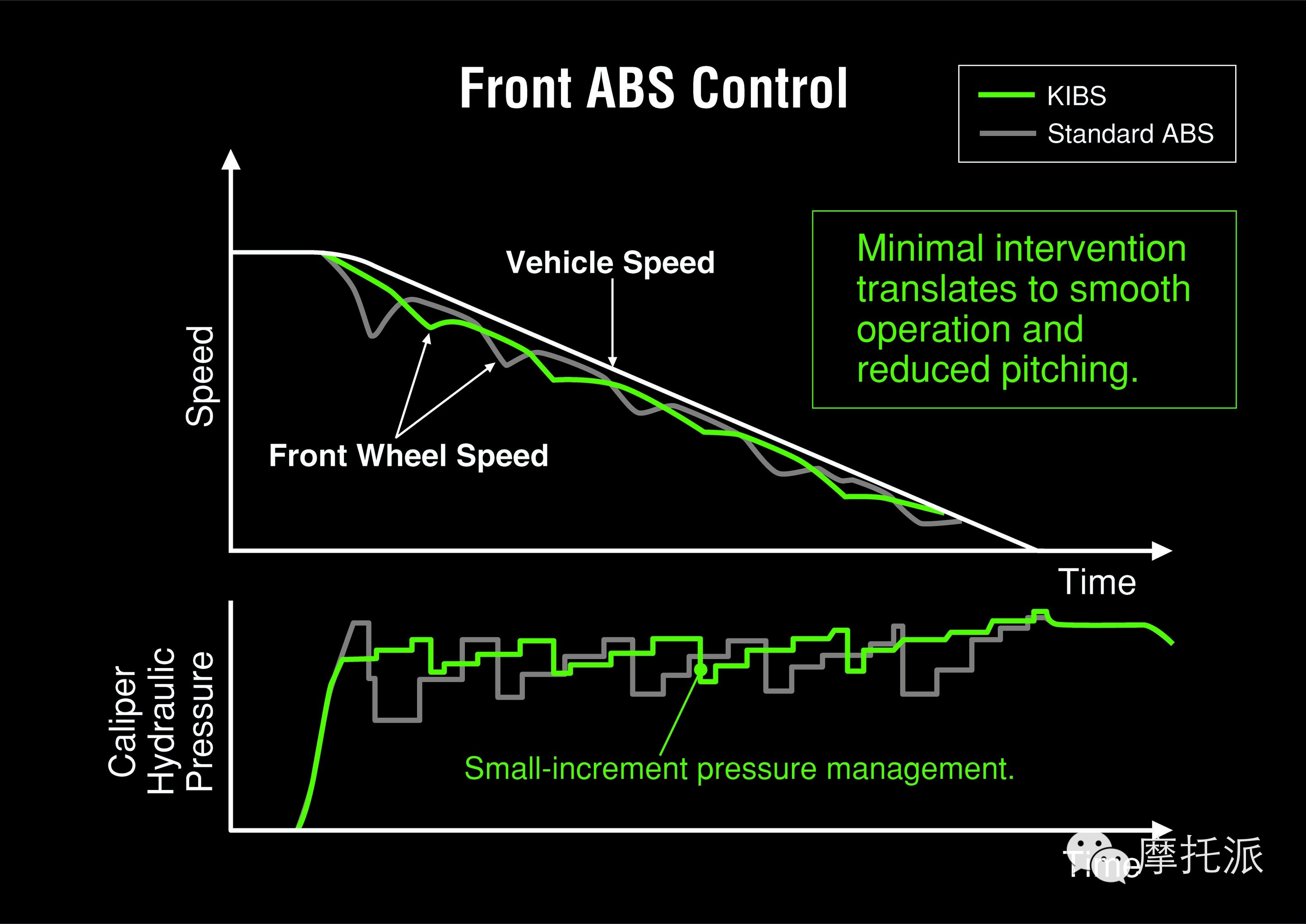 KIBS(川崎智能防锁刹车系统) 川崎集团超级运动型ABS是Ninja H2R的标准部件,与Ninja ZX-10R装配的是同款基础系统,但其程序和设置已经过修改,极其适合Ninja H2R的性能参数。