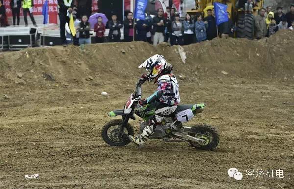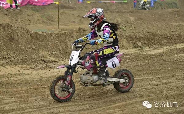 他们是来自河南洛阳的少年参赛选手李昊煜(7号选手)、李莲怡娜(6号选手)。据他们的母亲介绍,受孩子的父亲影响弟弟李昊煜3岁时就爱上了摩托车,5岁时就参加全国摩托车大赛,6岁时一举拿下2014全国摩托车越野锦标赛国产110CC青少年组个人第7名。图为李昊煜驰骋赛场。