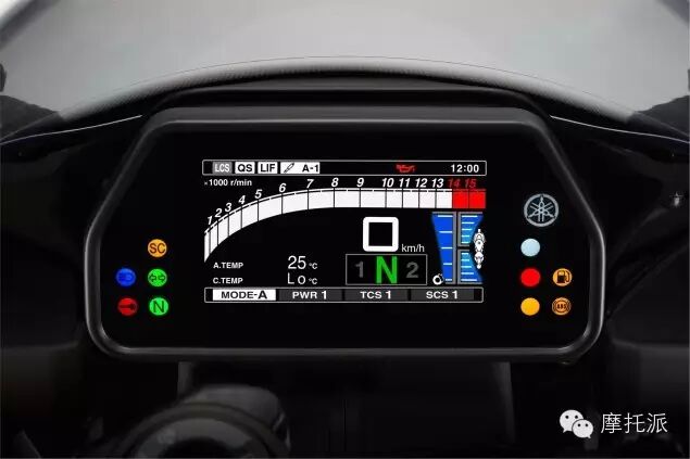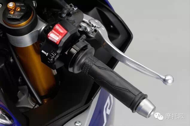 这款新引擎采用轻量化的钛合金连杆及锻造铝合金活塞,而新设计的气门摇臂有助增加入风量,配合10.5L的大容积风鼓成为加强马力的重要因素。全新YZF-R1放弃了排气管置于座垫下方的设计,在材料上也有所变化,新排气管全段均由钛合金制造,前后十幅式轮框也改用镁合金制材质,仅这两项就比上一代分别减轻530g及340g。 YAMAHA在新YZF-R1的制造上可谓“不惜成本”,经过层层的“脱皮抽脂”,最终新款YZF-R1的整备质量被控制在了200kg以下,比旧款206kg轻了7kg,但马力输出却提升了近10%,达到了147kW。一增一减使得全新YZF-R1在提速方面得到了质的飞跃。 新款YZF-R1的电子科技更是提前进入了未来。它配置了先进的六轴惯性测量系统,行车电脑根据感应器收集车辆的动态,例如加速、减速、左右倾角的速度,结合骑士选择的驾驶模式,让整体操控性更胜一筹。除此之外,新车还具有防抬头系统、起步弹射系统及快速电子升挡辅助功能。