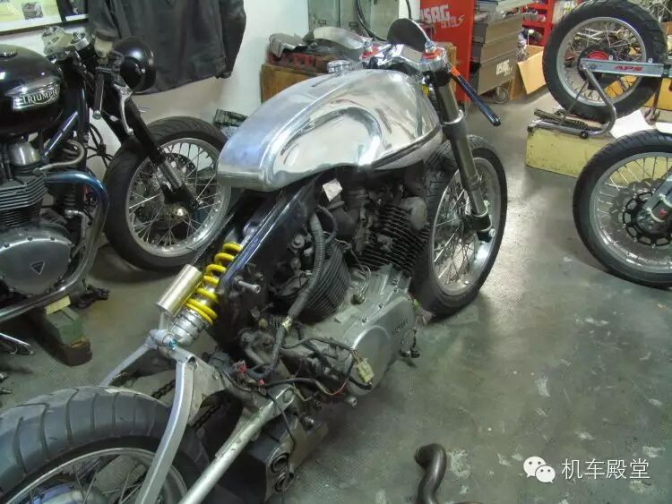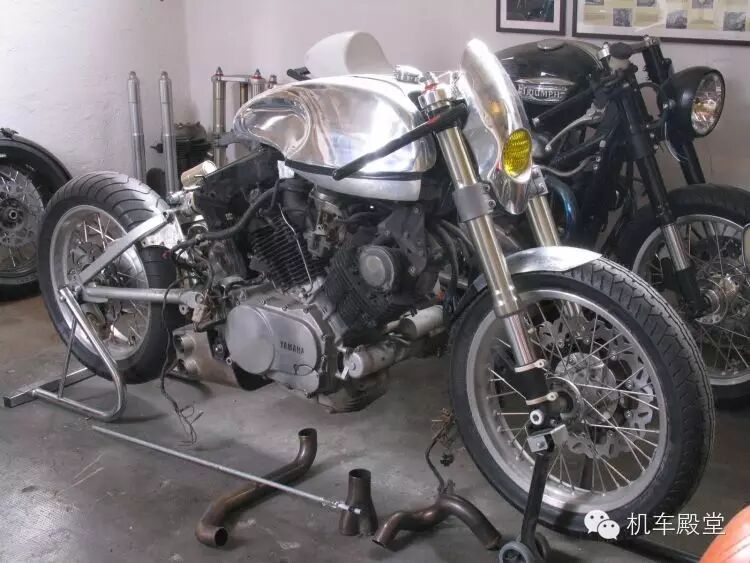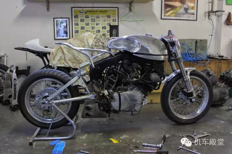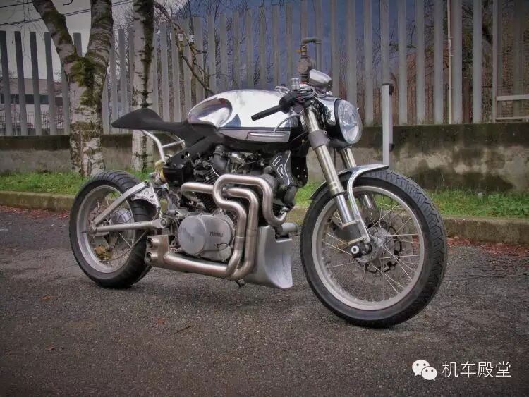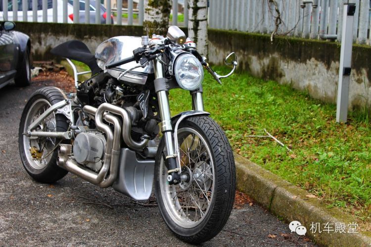 我们拿这辆定制款雅马哈TR1举例。基于日本市场的XV920R,这辆排量980cc的摩托车在欧洲销售,并获得了销售的成功。我们熟悉的“火球”也就是定制版TR1采用的很多手工部件,包括油箱,座位,把手,尾架和改造过的尾部副框架以及定制的排气系统。一个尾部单悬挂和前倒叉,加上哈雷大灯以及后座成就了这款令人抓狂的赛车