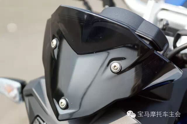 虽说是造型小风镜,但风镜尾端一样设有可以微幅度扰流的仰起部份,有总比没有好囉;风镜本身则是墨黑透明风镜,目前听说也有改装风镜在研发中,日后购车的准车主们若常骑乘高速路段,可以选择较长的风镜,减低风压造成的疲劳。